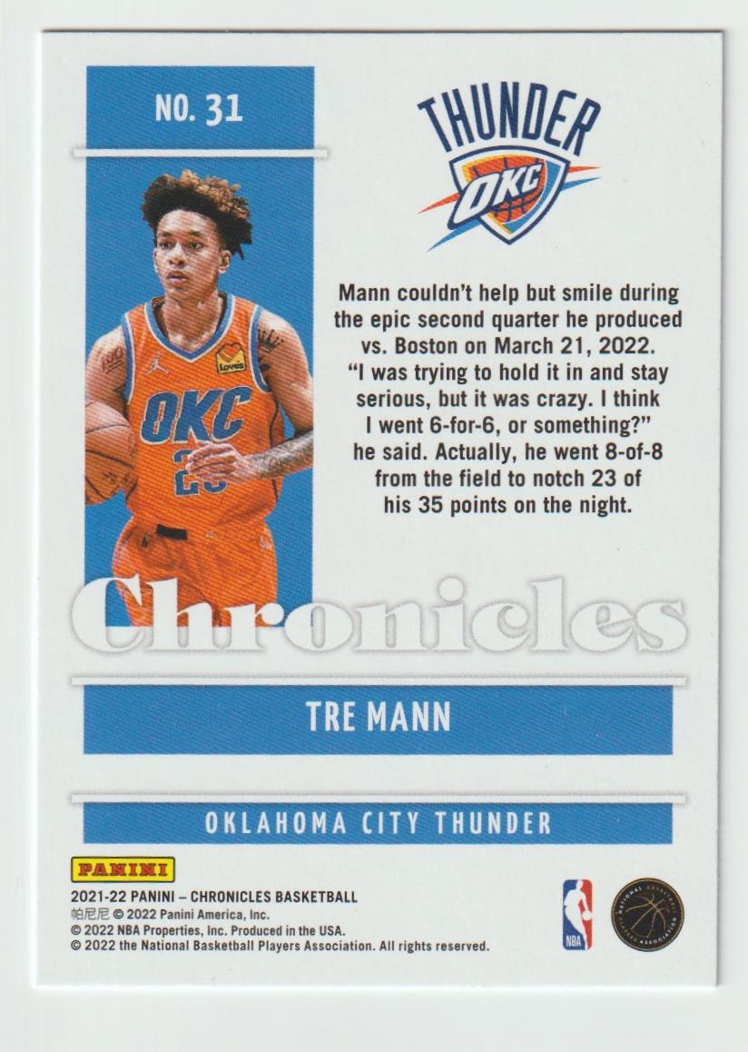31 Tre Mann - Oklahoma City Thunder 2021/22 Chronicles Basketball