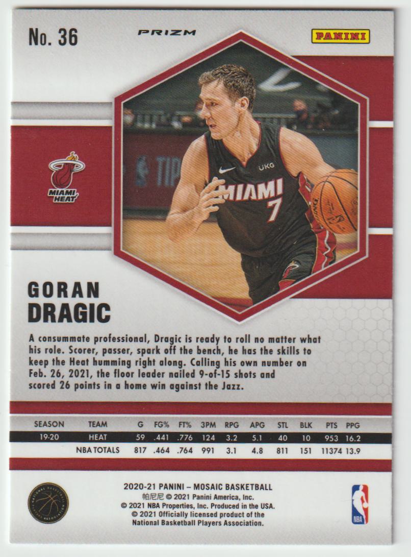 36 Goran Dragic - Miami Heat Red 2020/21 Mosaic Basketball
