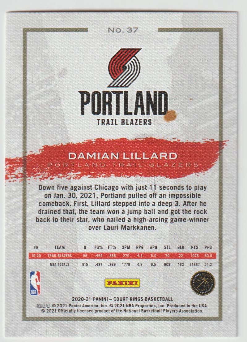 37 Damian Lillard - Portland Trail Blazers 2020/21 Court Kings Basketball