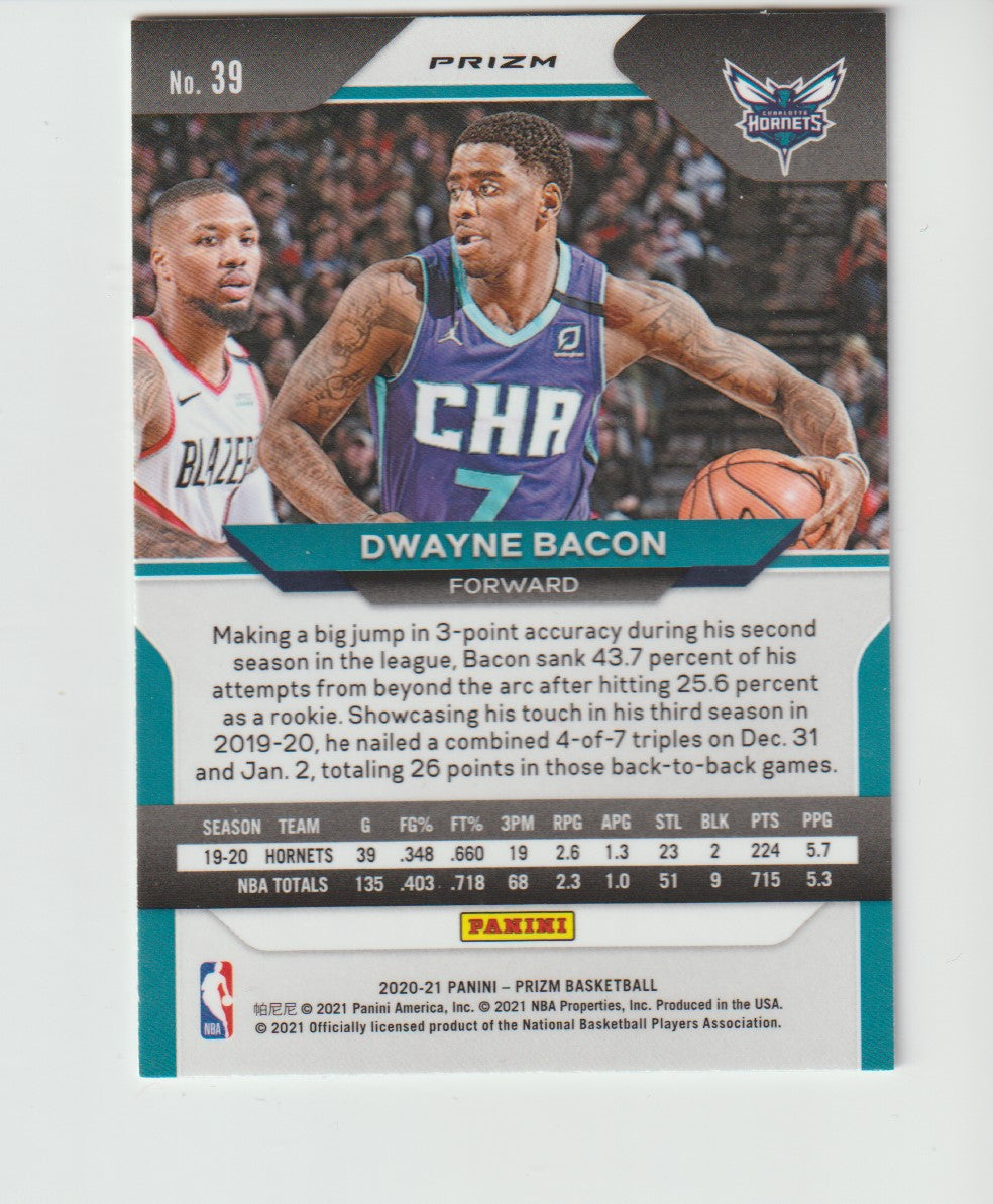 39 Dwayne Bacon - Charlotte Hornets Silver Prizm 2020/21 Prizm Basketball