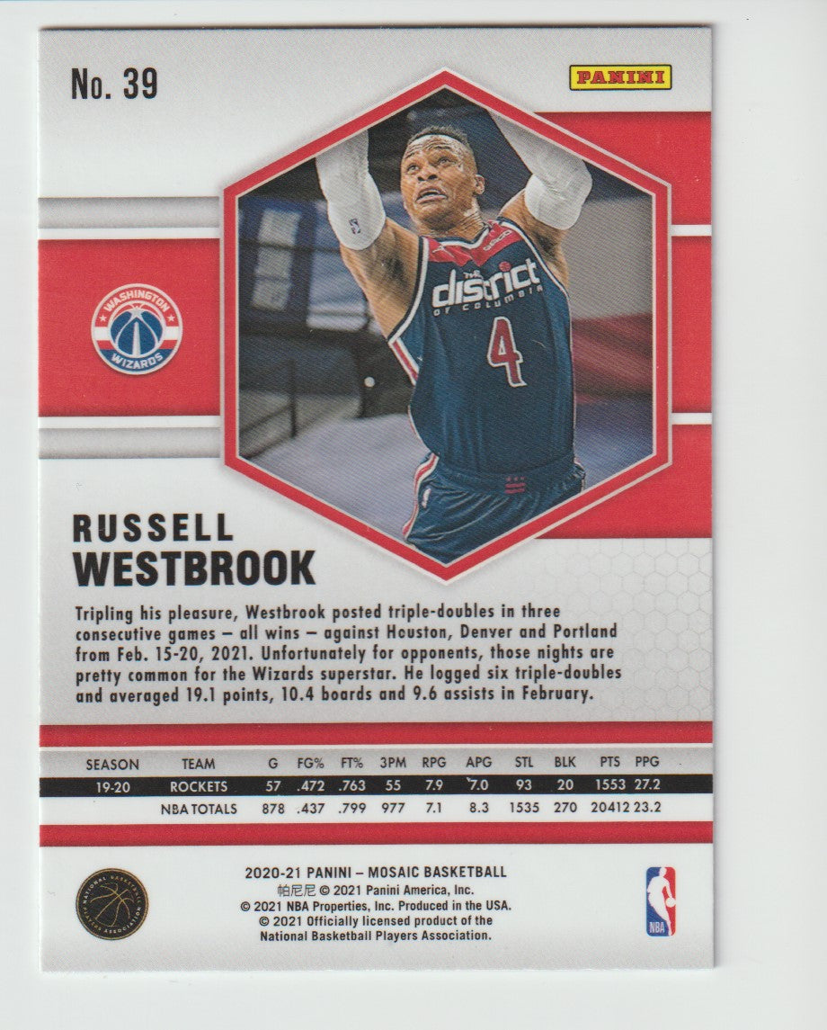 39 Russell Westbrook - Washington Wizards 2020/21 Mosaic Basketball