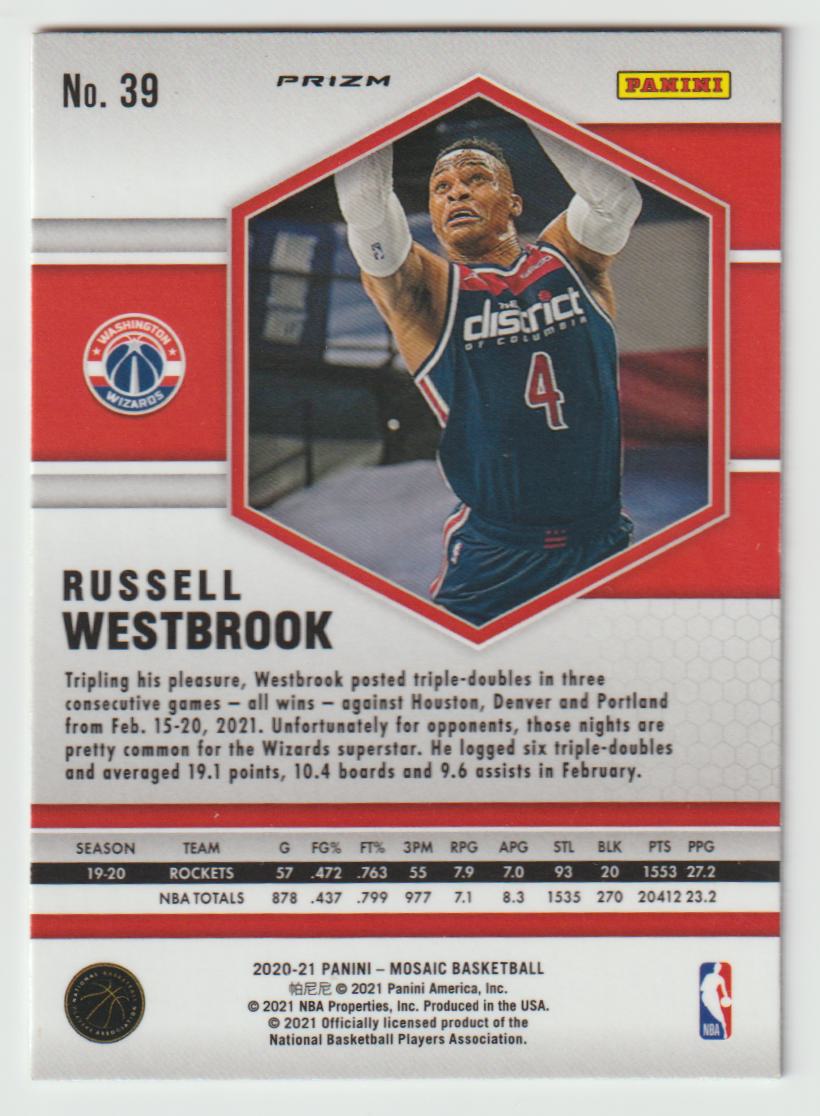 39 Russell Westbrook - Washington Wizards Camo Pink 2020/21 Mosaic Basketball