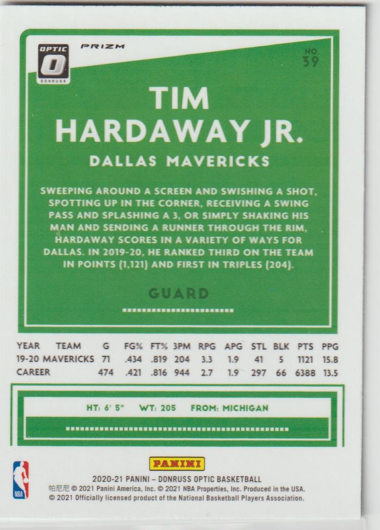 39 Tim Hardaway Jr. - Dallas Mavericks Holo 2020/21 Donruss Optic Basketball