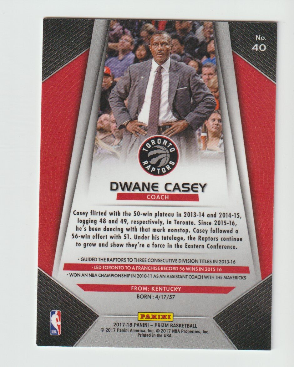 40 Dwane Casey - Toronto Raptors 2017/18 Prizm Basketball