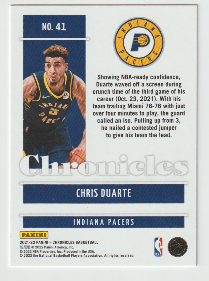 41 Chris Duarte - Indiana Pacers Green 2021/22 Chronicles Basketball