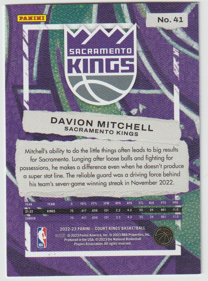 41 Davion Mitchell - Sacramento Kings 2022/23 Court Kings Basketball