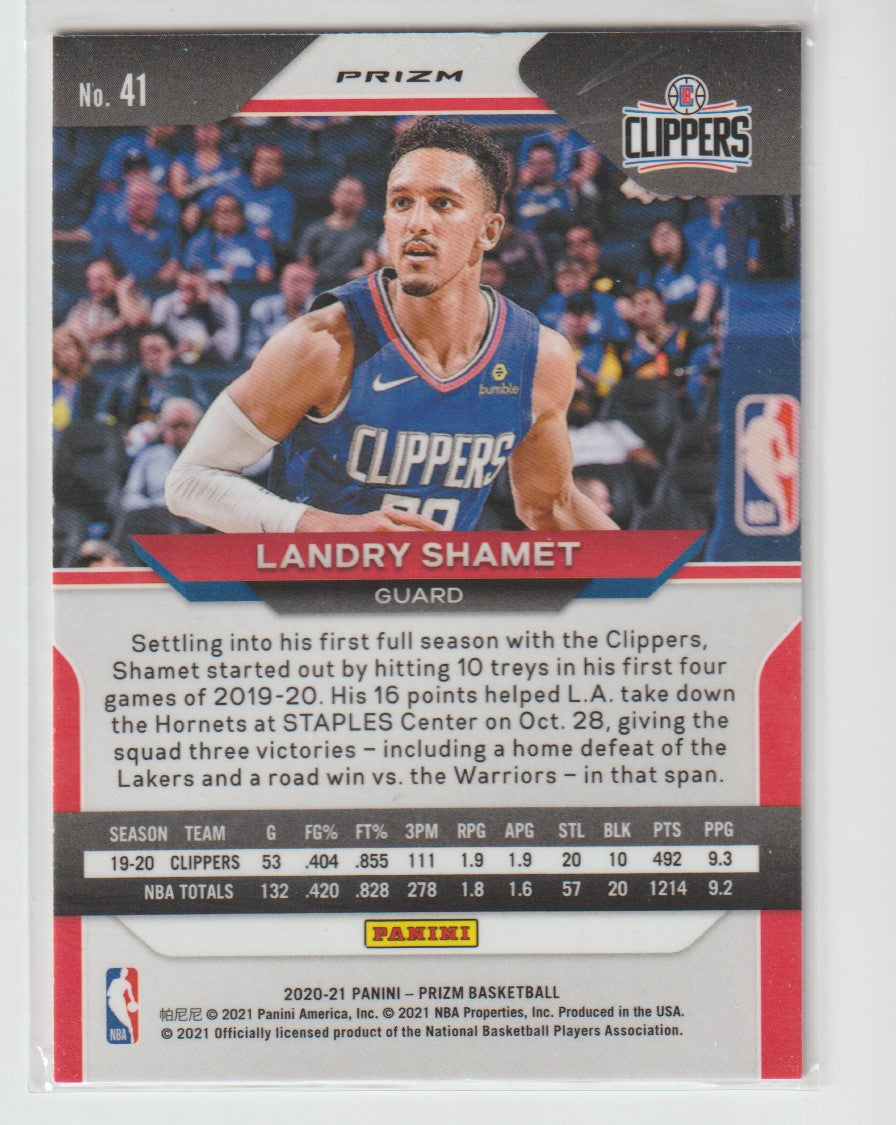 41 Landry Shamet - Los Angeles Clippers Red White Blue Prizm 2020/21 Prizm Basketball