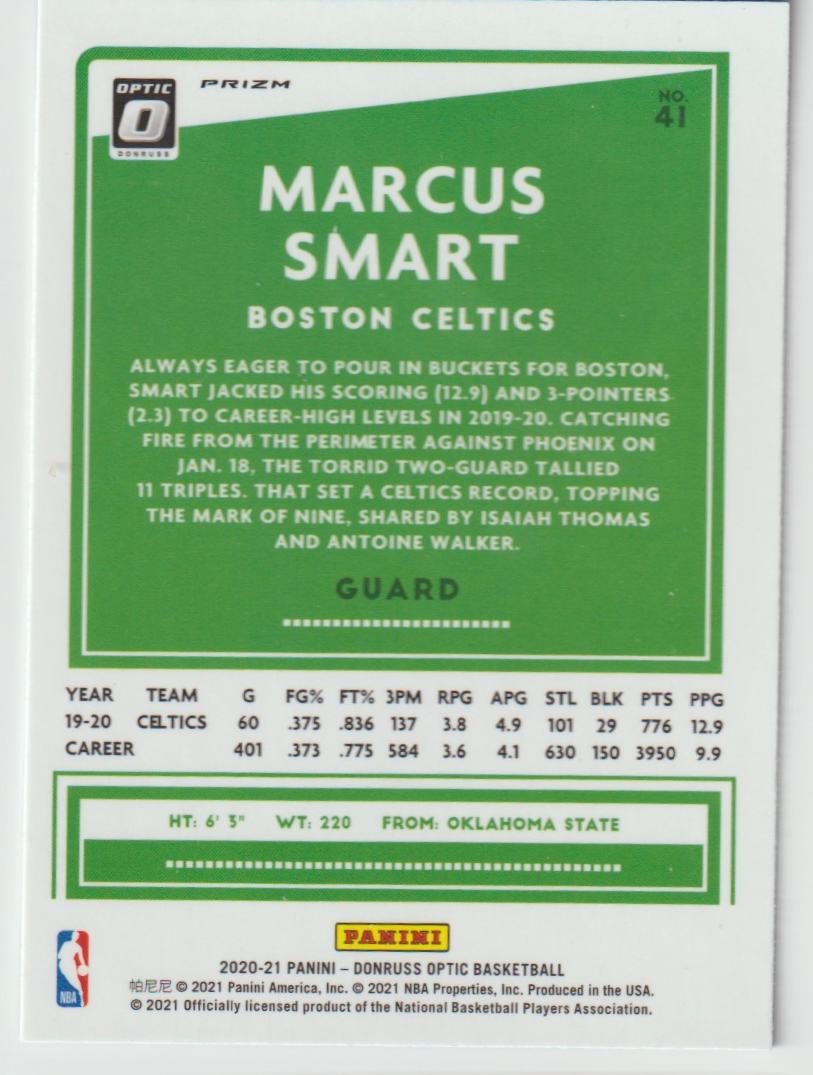 41 Marcus Smart - Boston Celtics Purple 2020/21 Donruss Optic Basketball