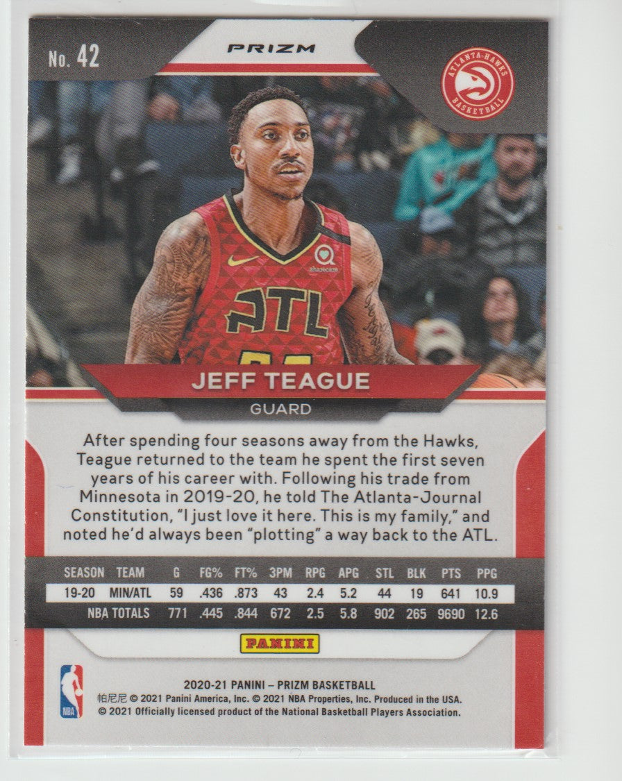 42 Jeff Teague - Atlanta Hawks Red White Blue Prizm 2020/21 Prizm Basketball