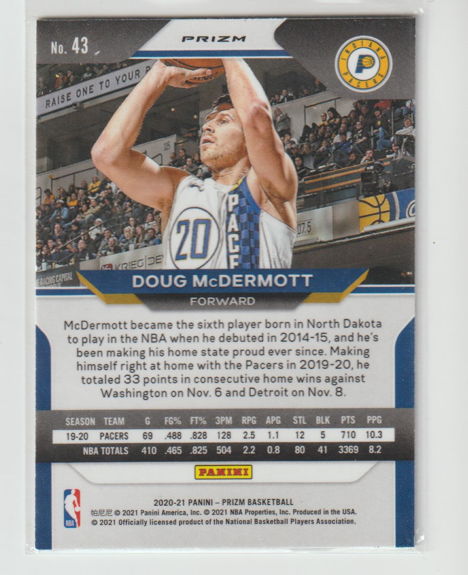 43 Doug McDermott - Indiana Pacers Green Prizm 2020/21 Prizm Basketball