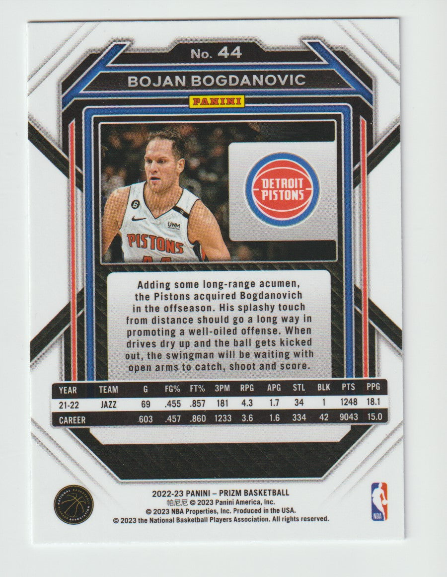 44 Bojan Bogdanovic - Detroit Pistons 2022/23 Prizm Basketball