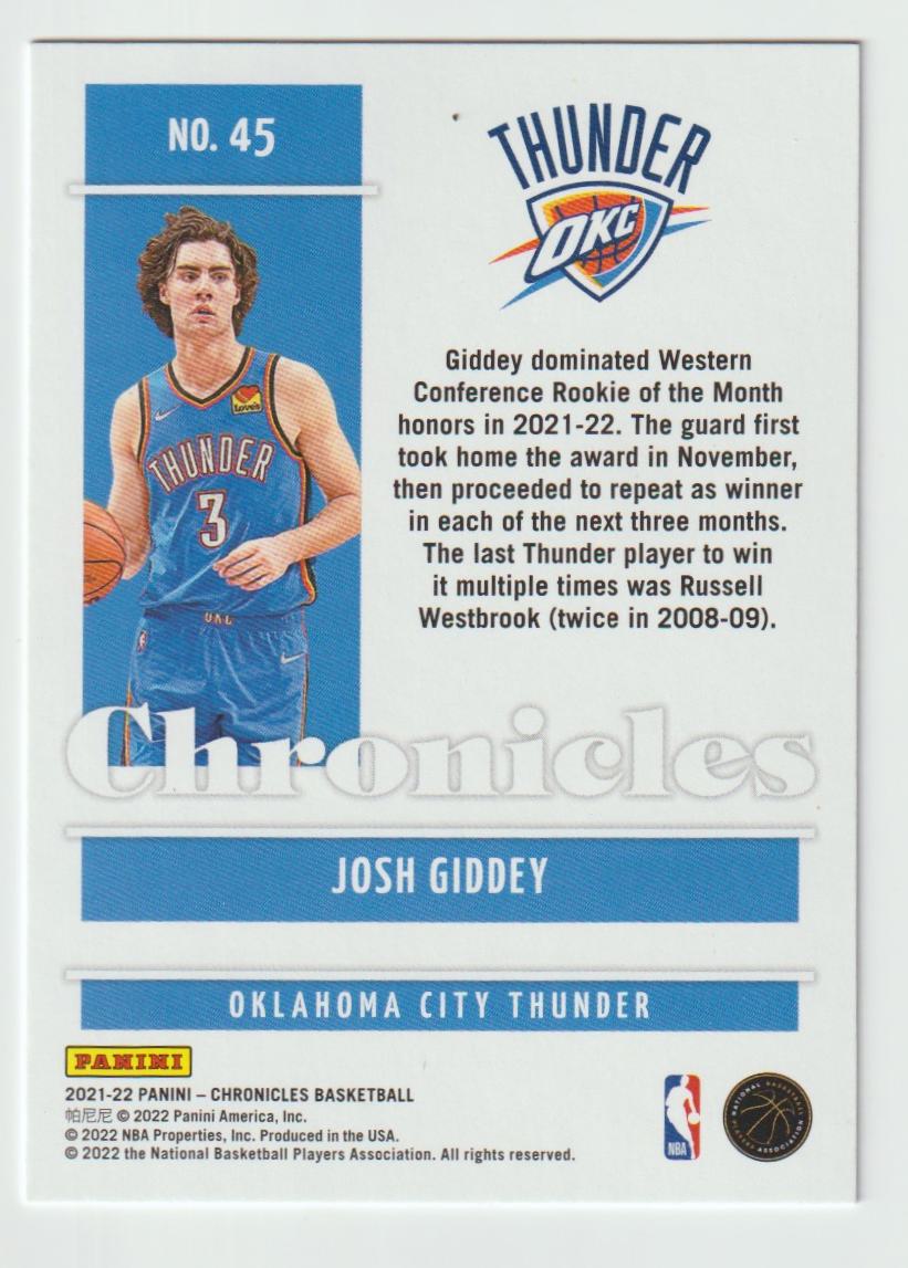 45 Josh Giddey - Oklahoma City Thunder 2021/22 Chronicles Basketball