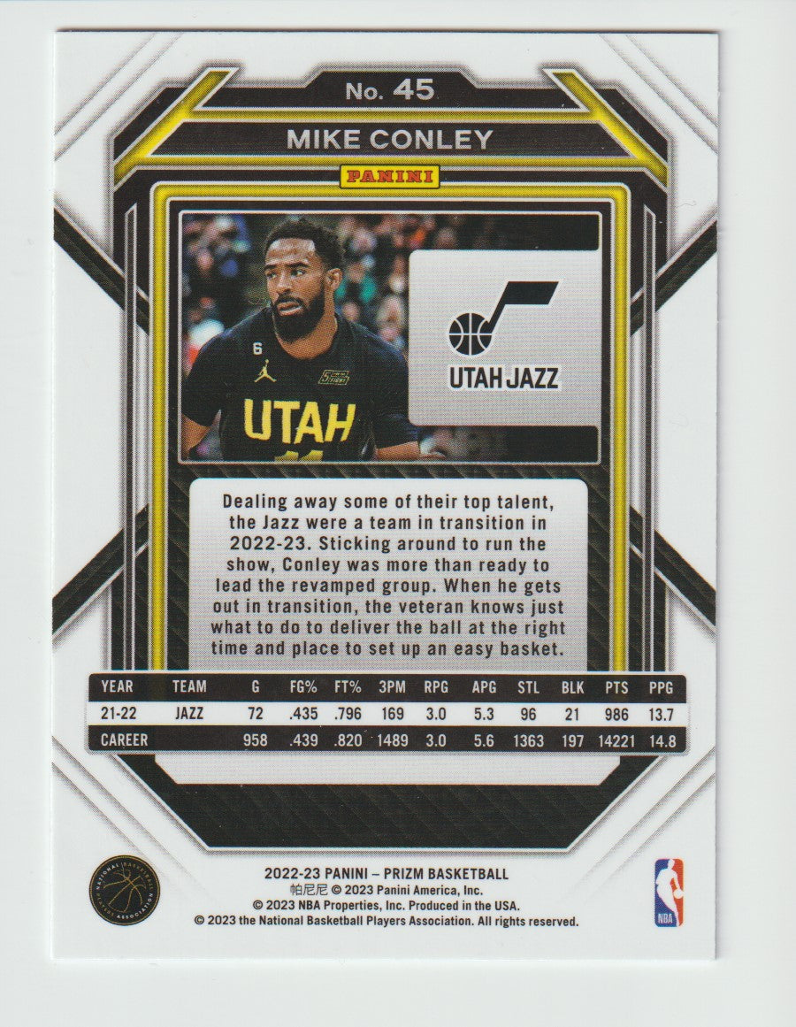 45 Mike Conley - Utah Jazz 2022/23 Prizm Basketball