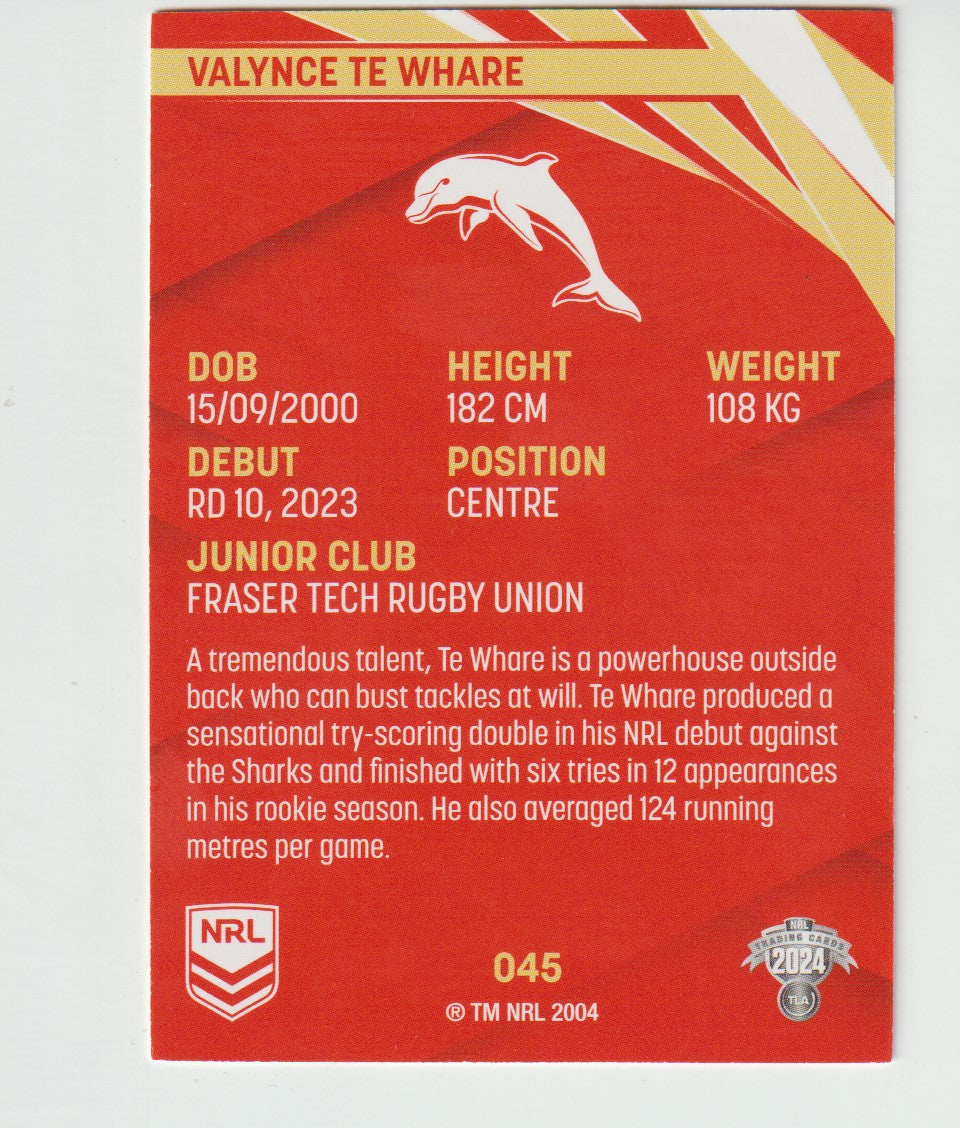 45 VALYNCE TE WHARE 2024 NRL Traders