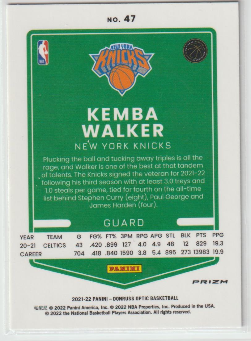 47 Kemba Walker - New York Knicks Purple 2021/22 Donruss Optic Basketball