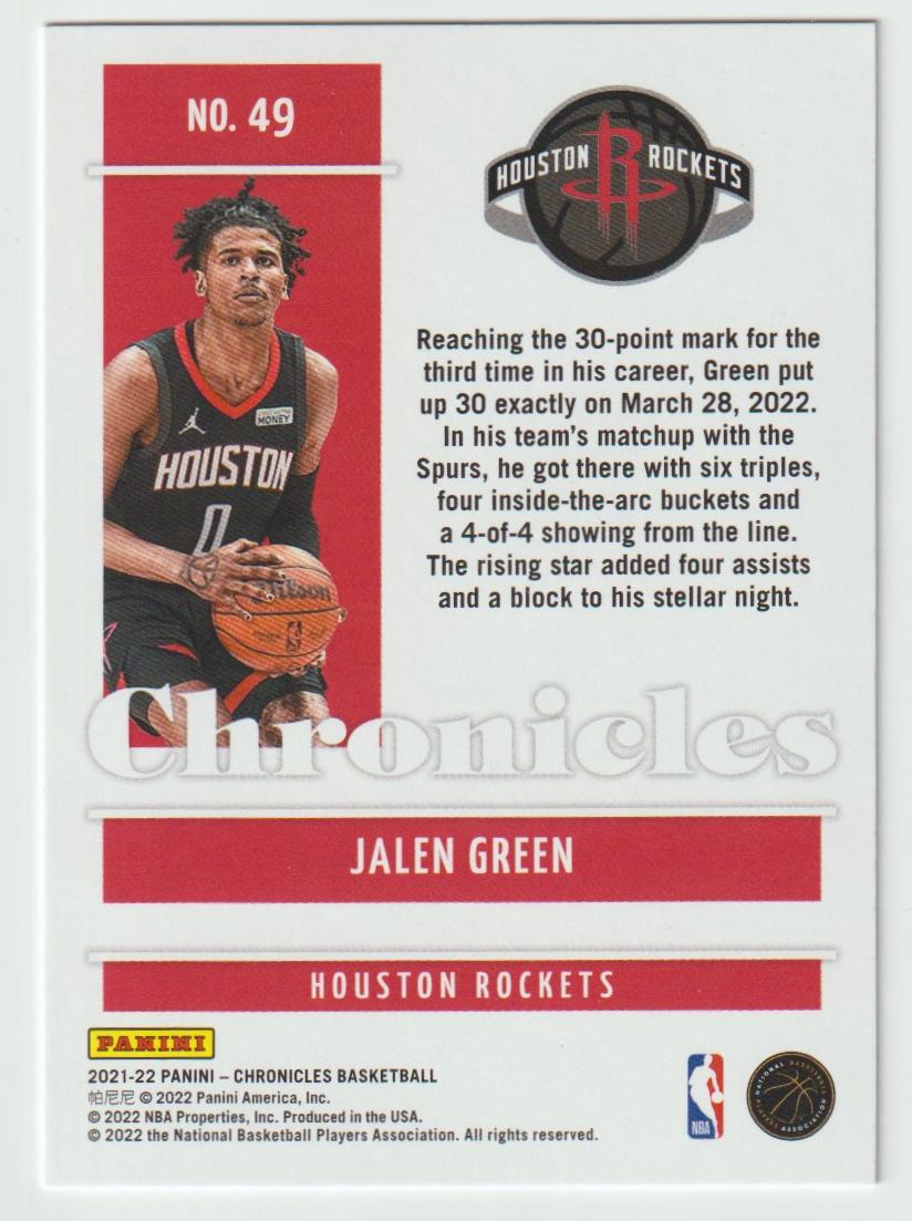 49 Jalen Green - Houston Rockets 2021/22 Chronicles Basketball
