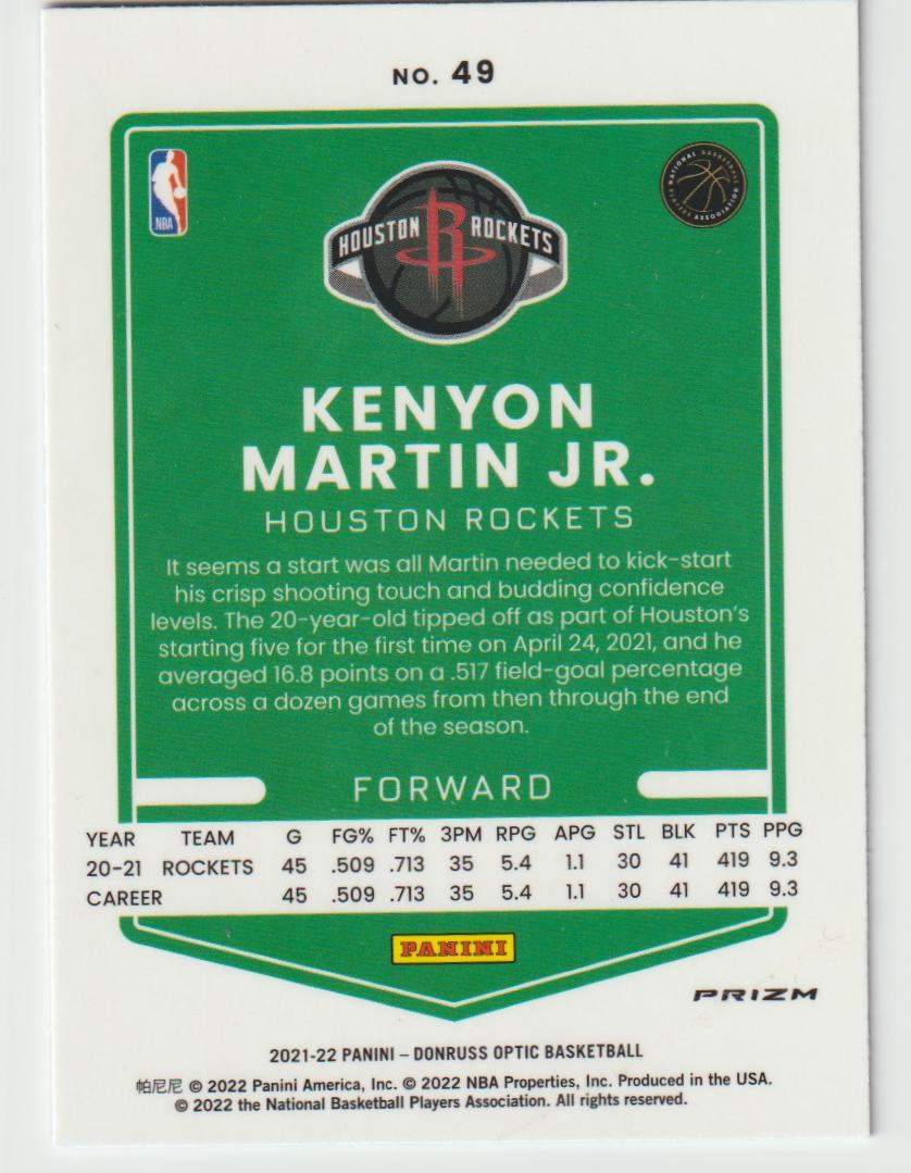 49 Kenyon Martin Jr. - Houston Rockets Blue Velocity 2021/22 Donruss Optic Basketball
