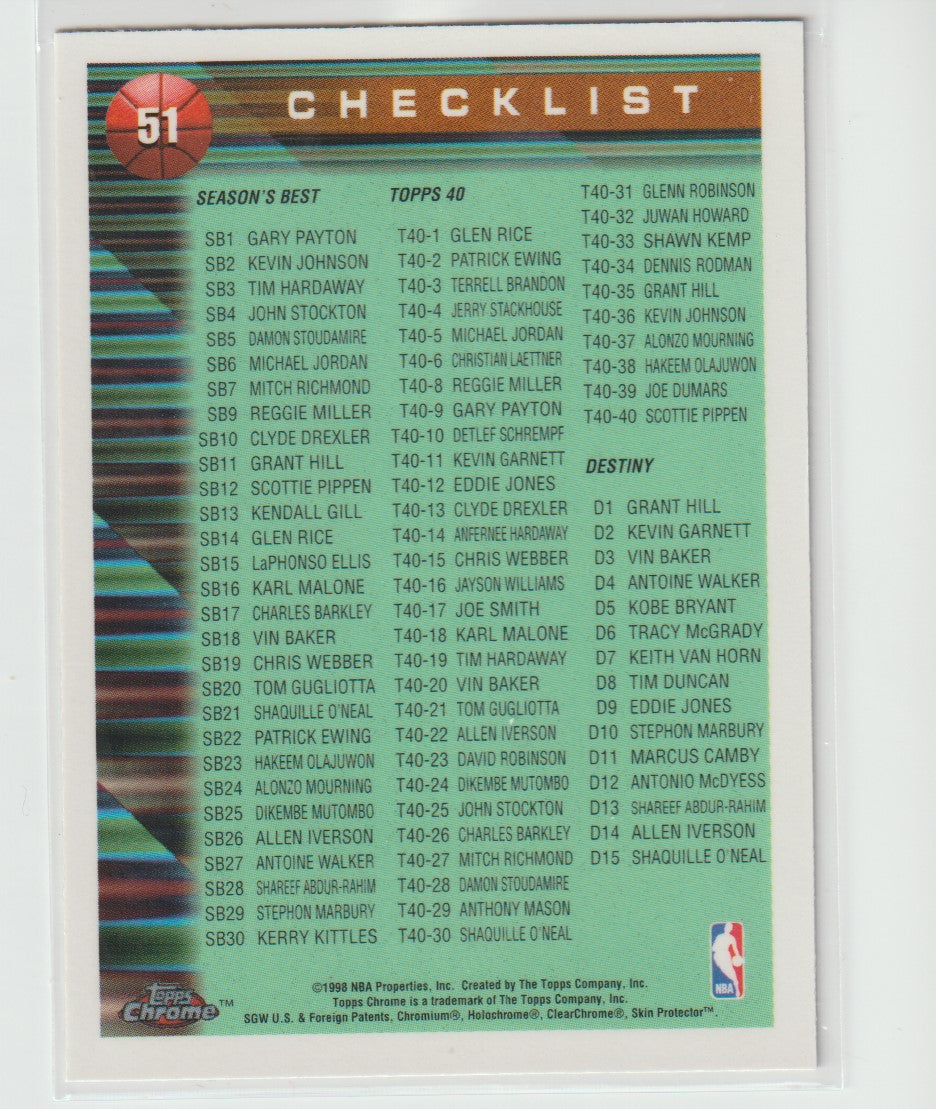 51 Chicago Bulls 1996-97 NBA Champions 1997/98 Topps Chrome Basketball