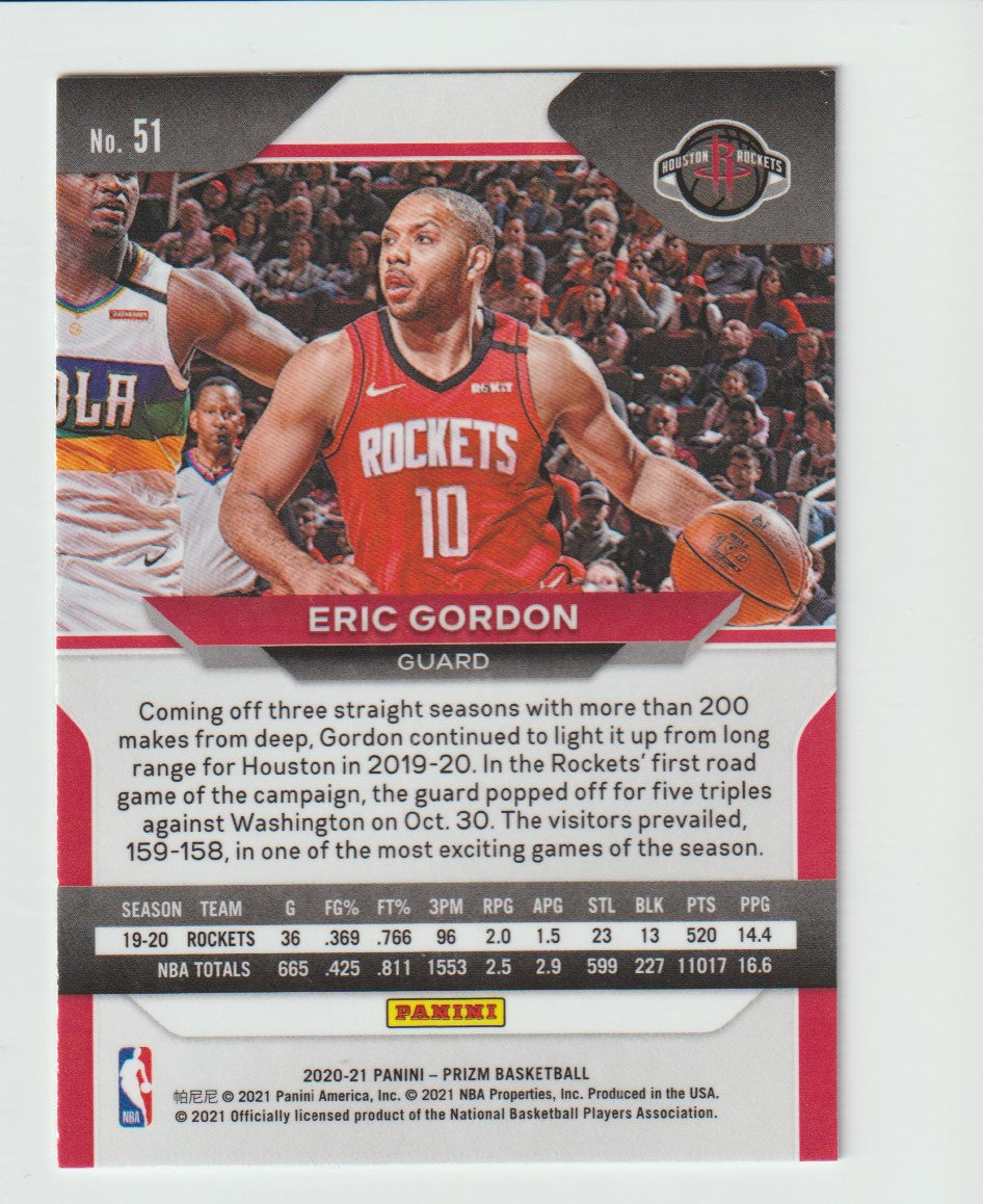 51 Eric Gordon - Houston Rockets 2020/21 Prizm Basketball