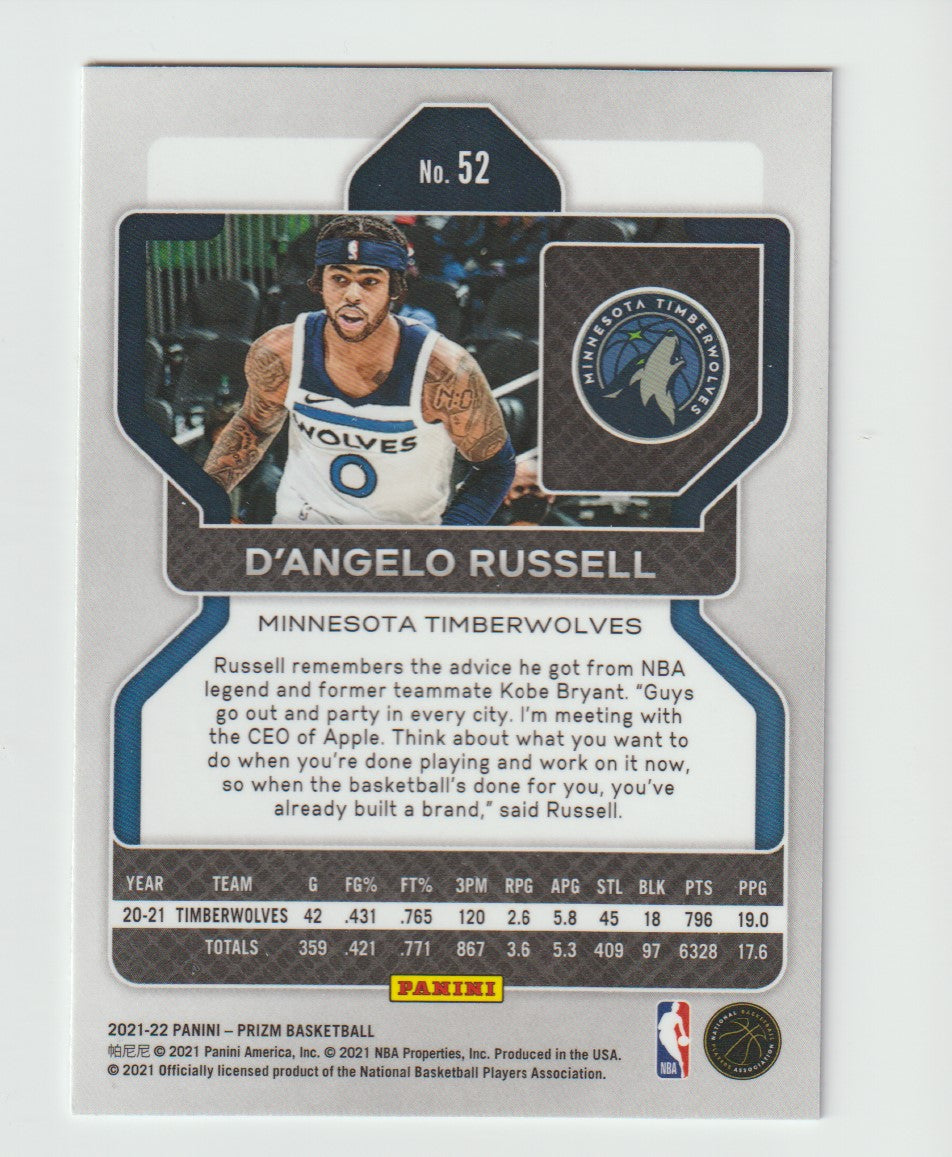 52 D'Angelo Russell - Minnesota Timberwolves 2021/22 Prizm Basketball