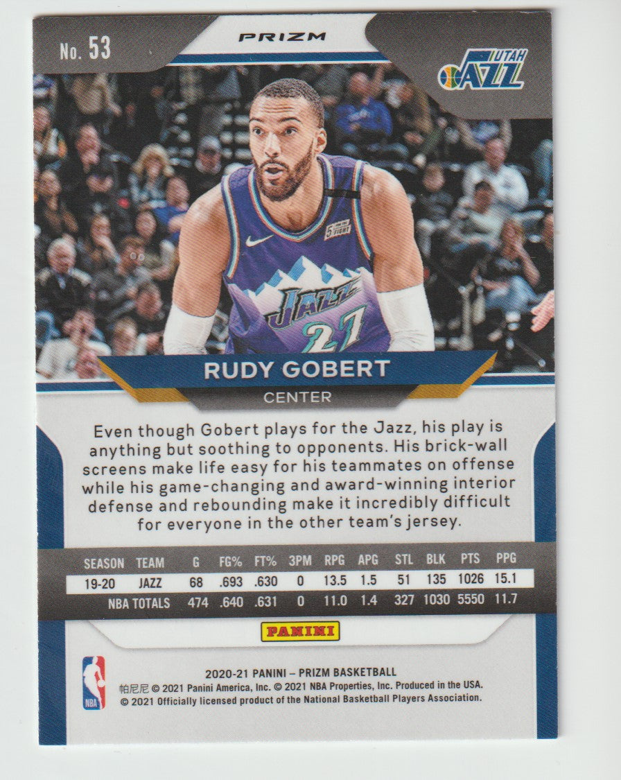 53 Rudy Gobert - Utah Jazz Red White Blue Prizm 2020/21 Prizm Basketball