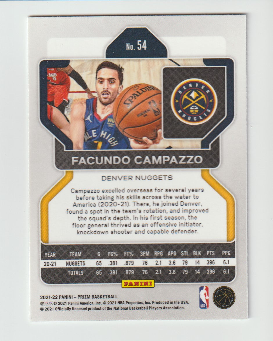 54 Facundo Campazzo - Denver Nuggets 2021/22 Prizm Basketball