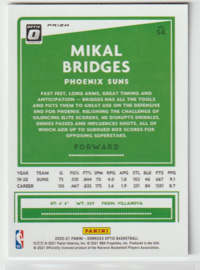 54 Mikal Bridges - Phoenix Suns Holo 2020/21 Donruss Optic Basketball