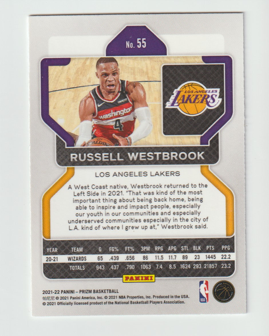55 Russell Westbrook - Los Angeles Lakers 2021/22 Prizm Basketball