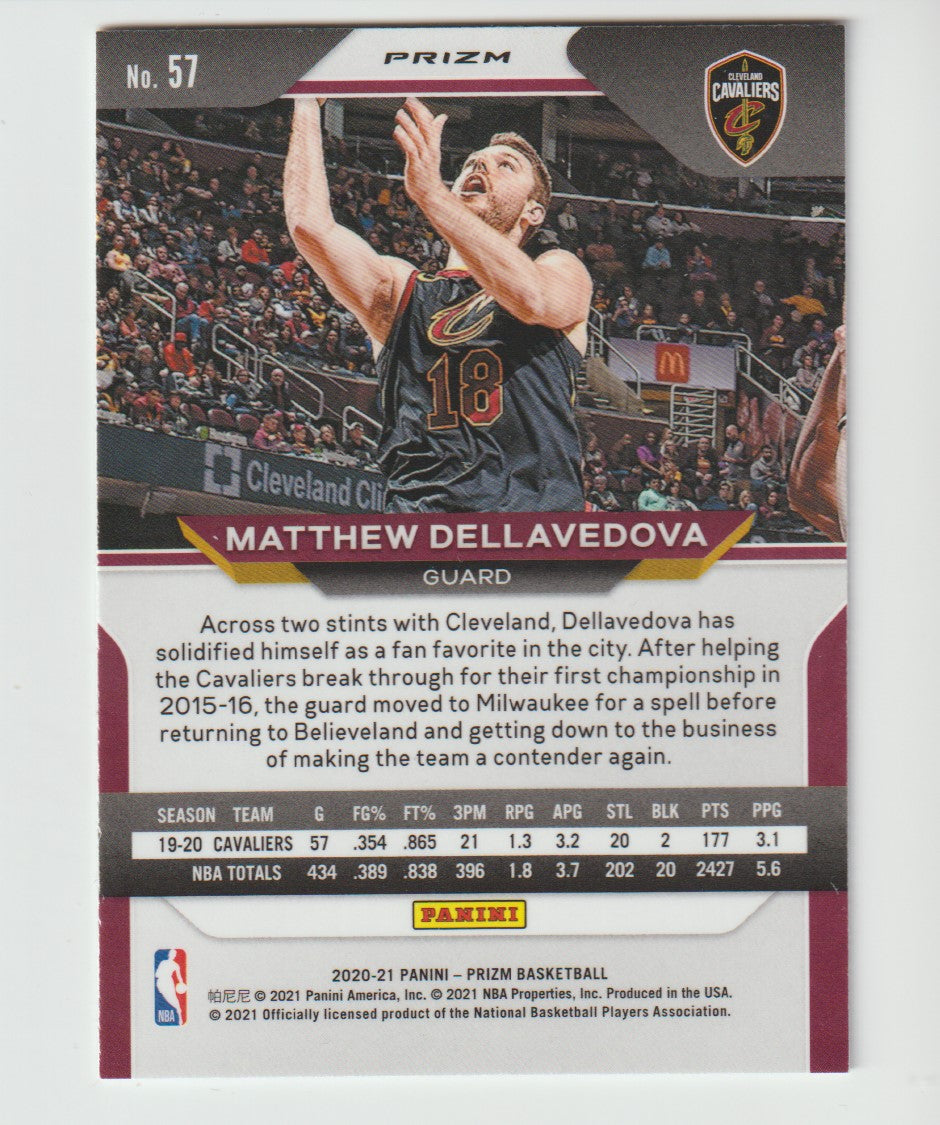 57 Matthew Dellavedova - Cleveland Cavaliers Silver Prizm 2020/21 Prizm Basketball