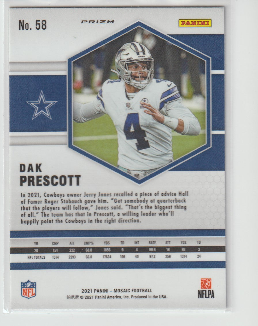 58 Dak Prescott - Dallas Cowboys Green Parallel 2021 Mosaic Football, Ebay