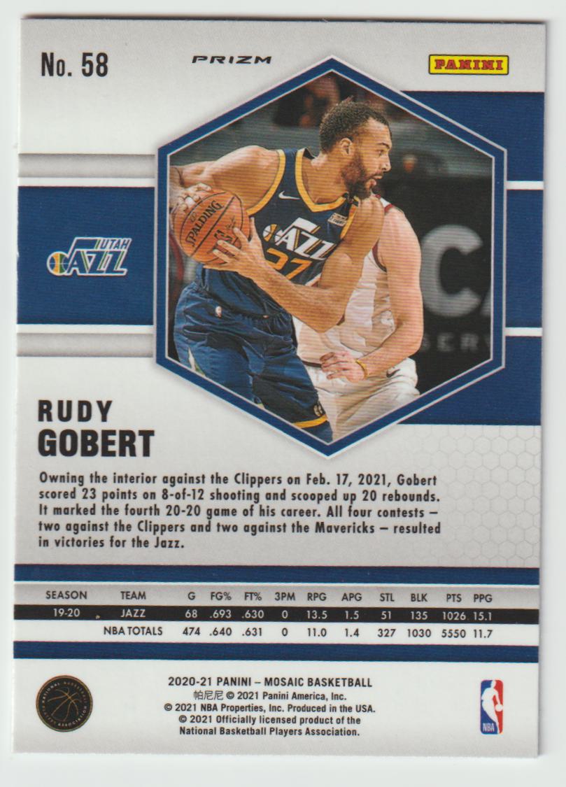58 Rudy Gobert - Utah Jazz Camo Pink 2020/21 Mosaic Basketball