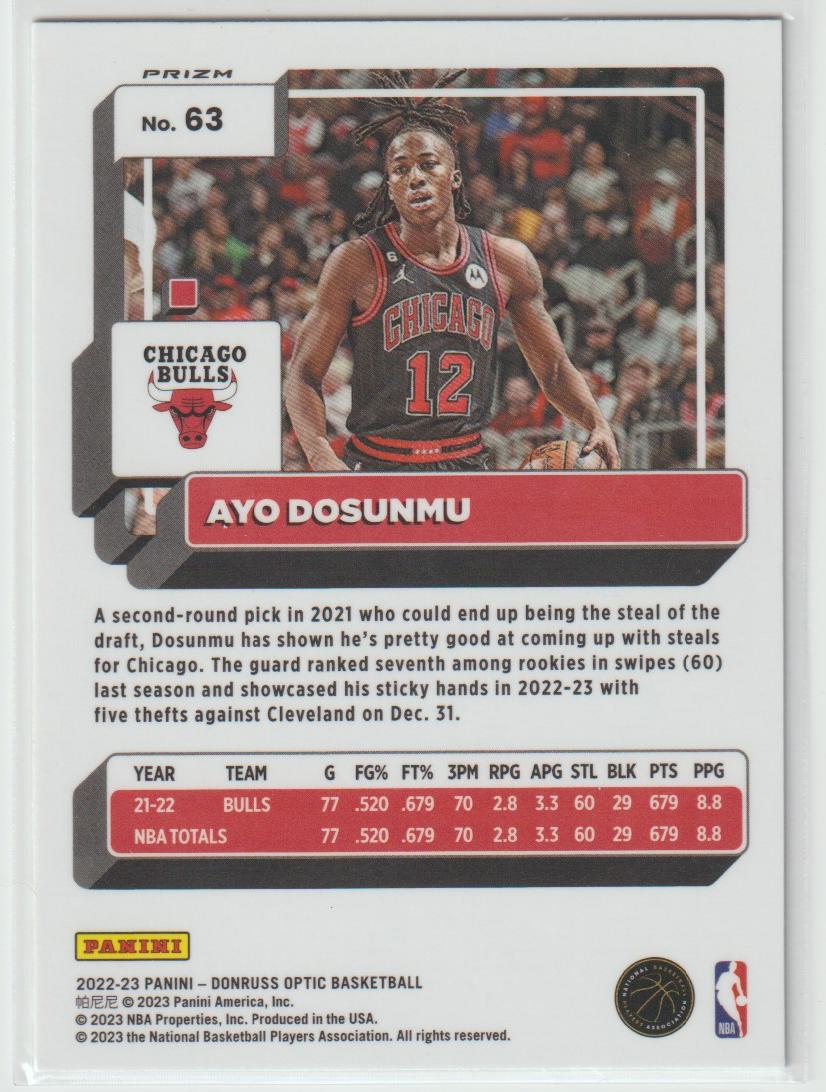 63 Ayo Dosunmu - Chicago Bulls Holo 2022/23 Donruss Optic Basketball