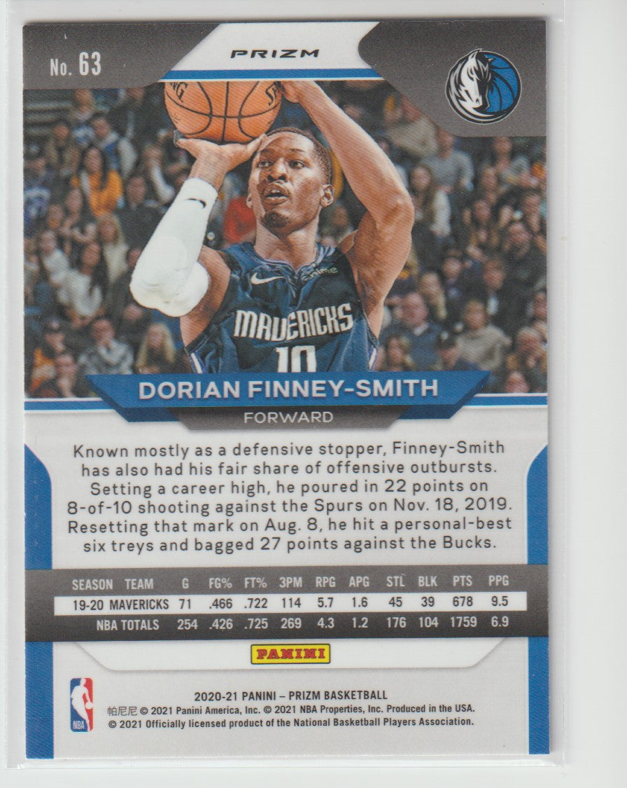 63 Dorian Finney-Smith - Dallas Mavericks Red White Blue Prizm 2020/21 Prizm Basketball