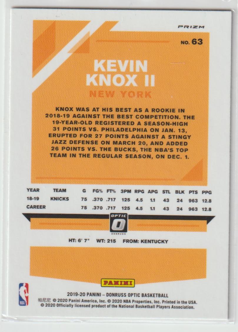 63 Kevin Knox II - New York Knicks Red Wave 2019/20 Donruss Optic Basketball