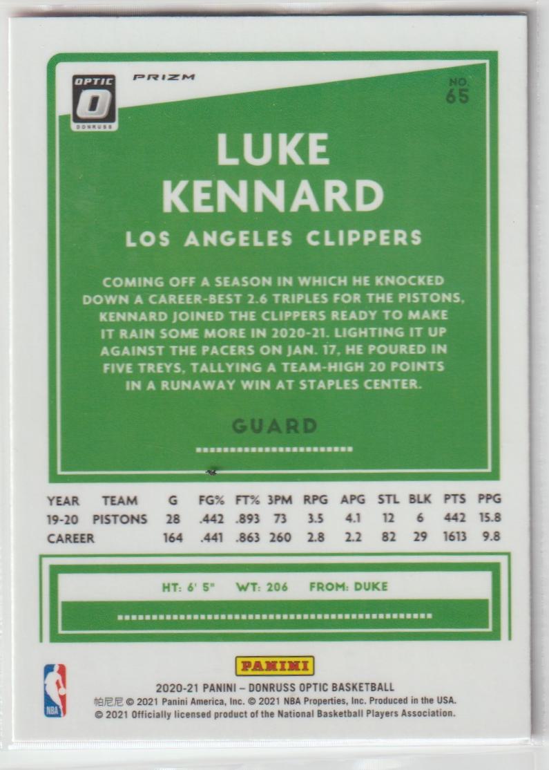 65 Luke Kennard - Los Angeles Clippers Hyper Pink 2020/21 Donruss Optic Basketball