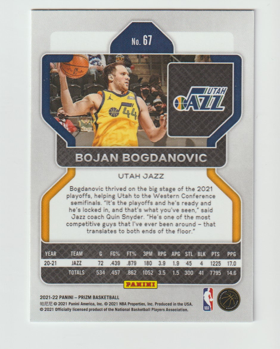 67 Bojan Bogdanovic - Utah Jazz 2021/22 Prizm Basketball