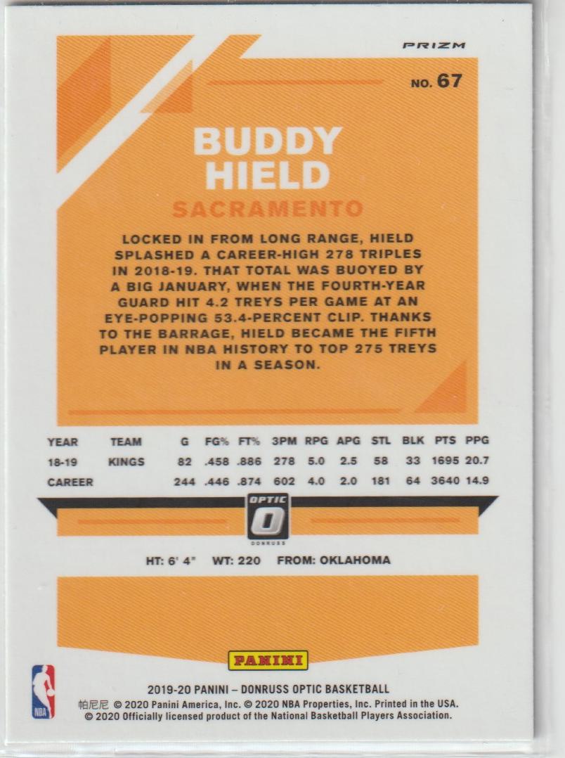 67 Buddy Hield - Sacramento Kings Purple 2019/20 Donruss Optic Basketball