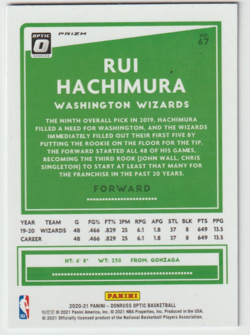 67 Rui Hachimura - Washington Wizards Blue Velocity 2020/21 Donruss Optic Basketball