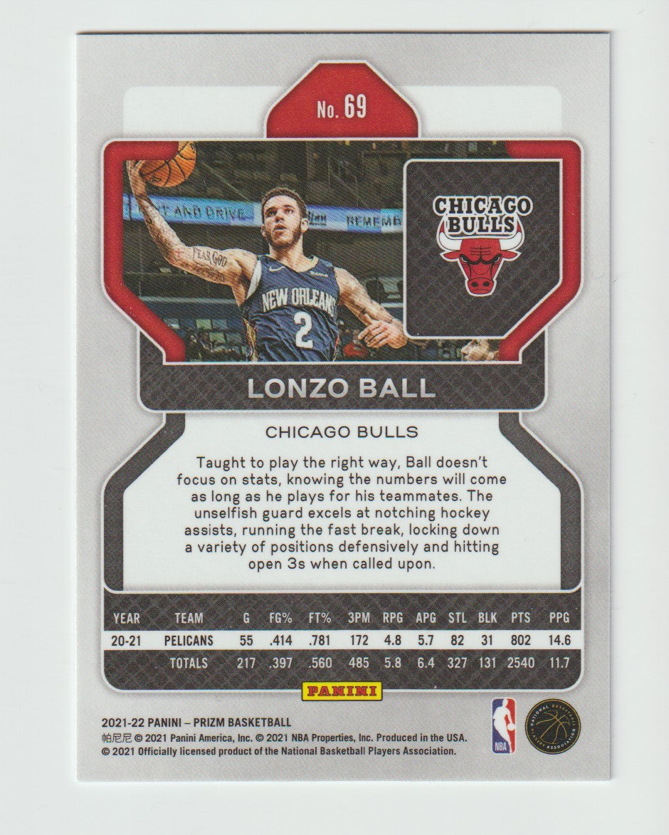 69 Lonzo Ball - Chicago Bulls 2021/22 Prizm Basketball