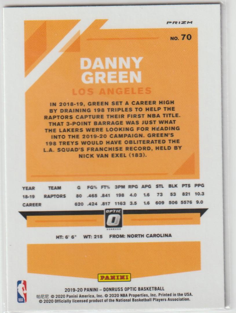 70 Danny Green - Los Angeles Lakers Red Wave 2019/20 Donruss Optic Basketball