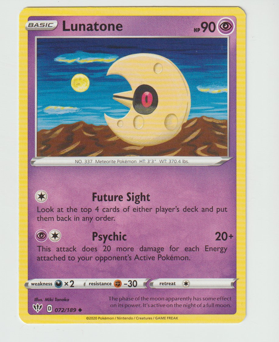 072/189 Lunatone Uncommon 2020 Sword & Shield: Darkness Ablaze