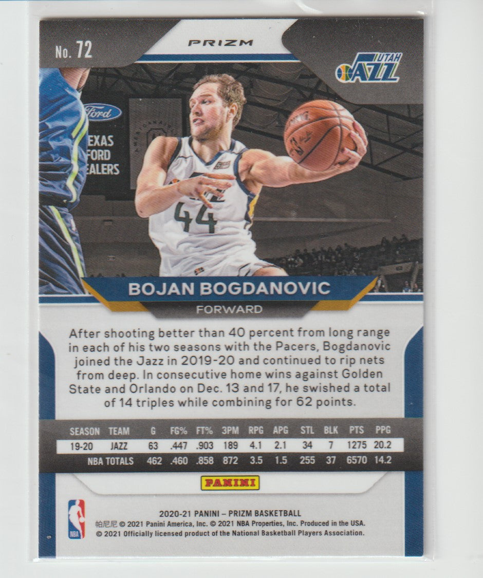 72 Bojan Bogdanovic - Utah Jazz Silver Prizm 2020/21 Prizm Basketball