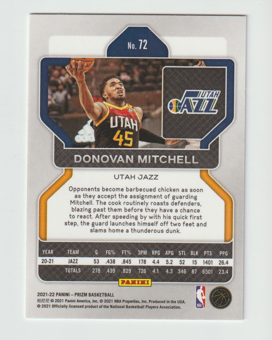 72 Donovan Mitchell - Utah Jazz 2021/22 Prizm Basketball