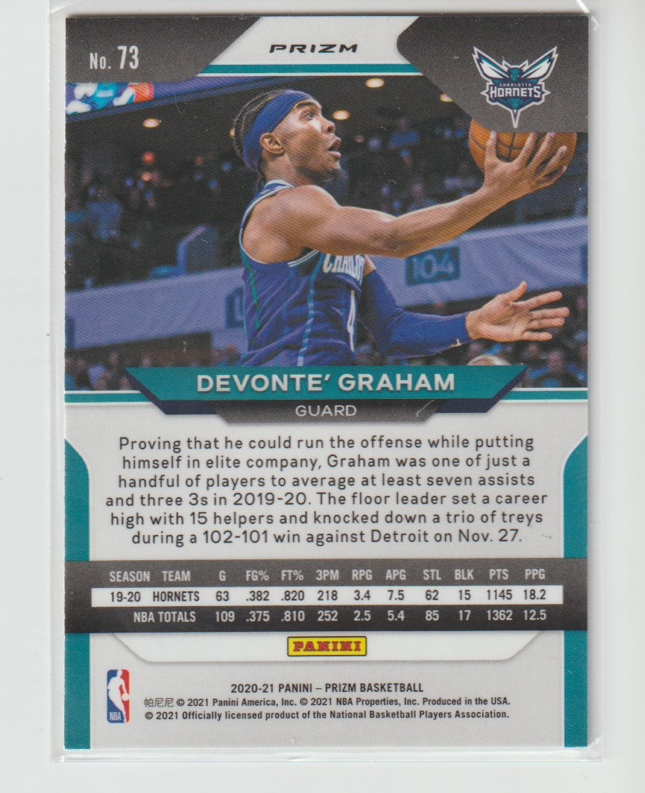 73 Devonte' Graham - Charlotte Hornets Green Prizm 2020/21 Prizm Basketball