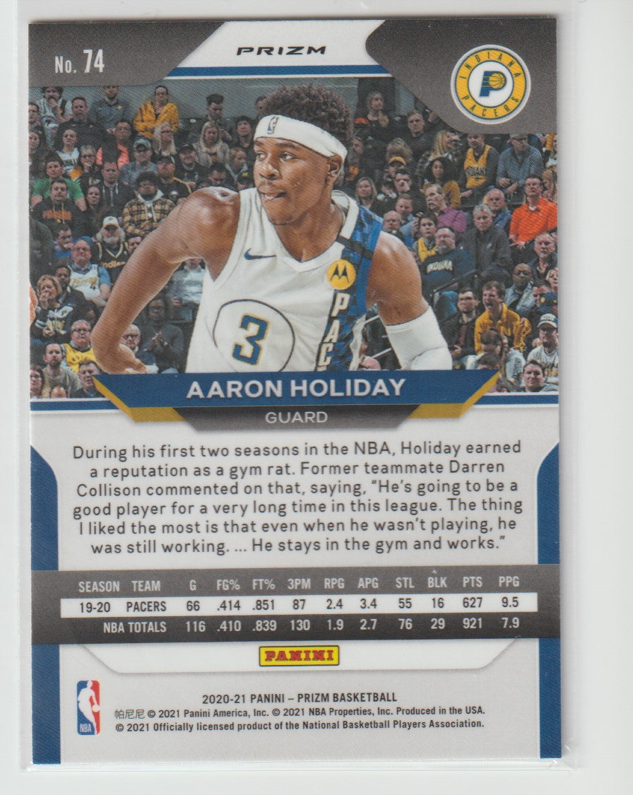 74 Aaron Holiday - Indiana Pacers Purple Wave Prizm 2020/21 Prizm Basketball