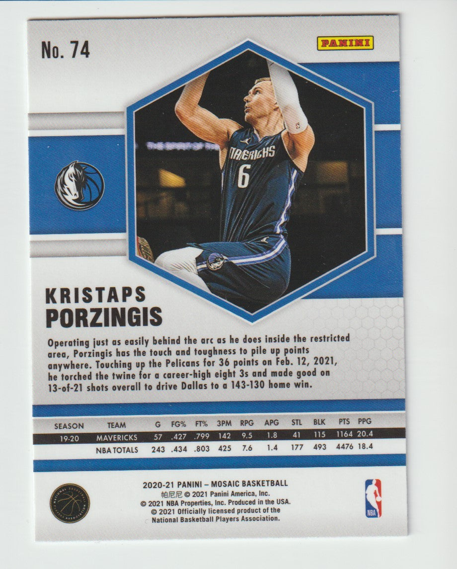 74 Kristaps Porzingis - Dallas Mavericks 2020/21 Mosaic Basketball