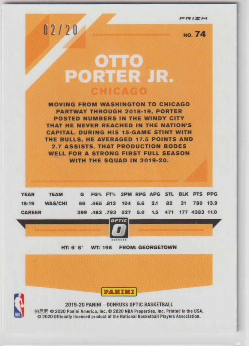 74 Otto Porter Jr. - Chicago Bulls Fast Break Pink 2/20 2019/20 Donruss Optic Basketball