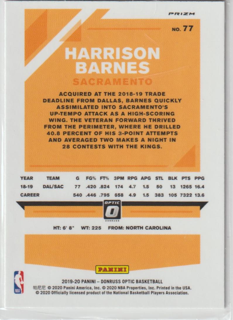 77 Harrison Barnes - Sacramento Kings Hyper Pink Prizm 2019/20 Donruss Optic Basketball