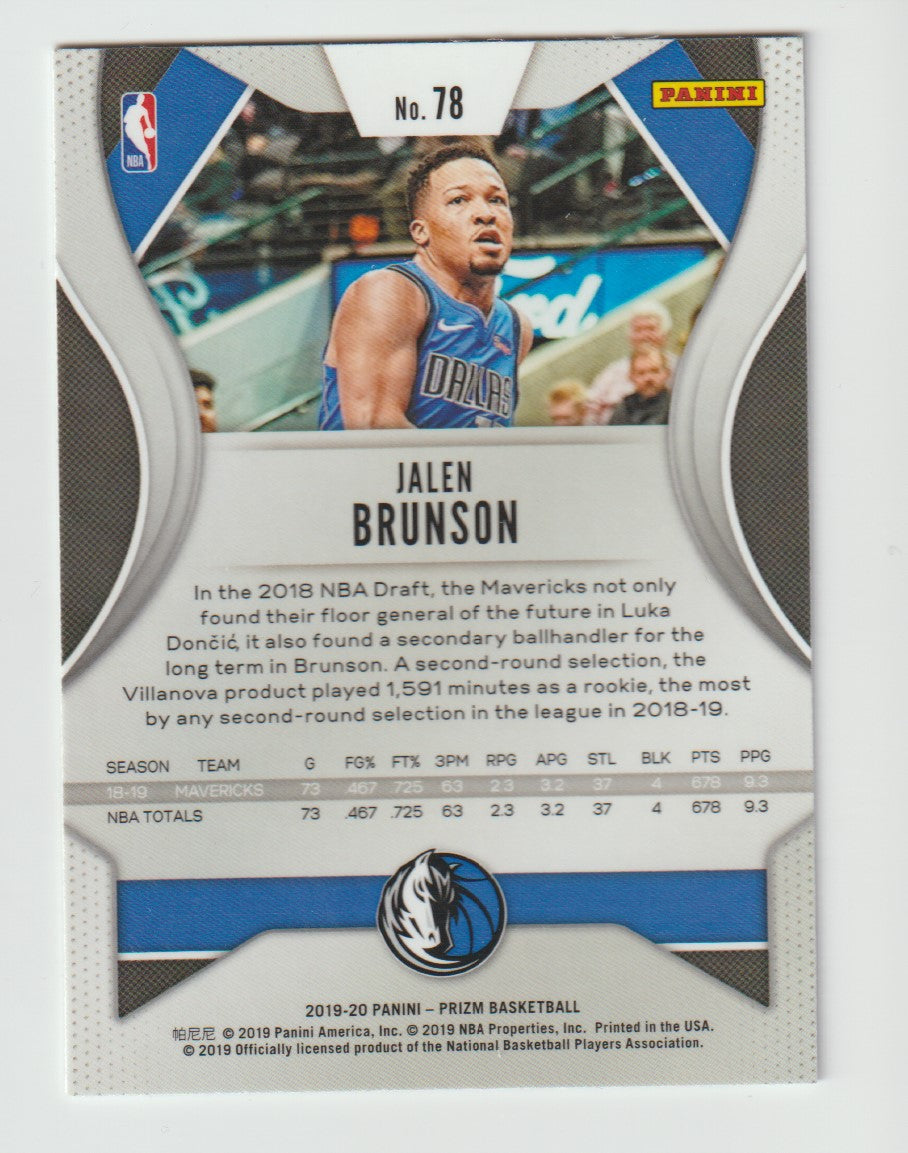 78 Jalen Brunson - Dallas Mavericks 2019/20 Prizm Basketball