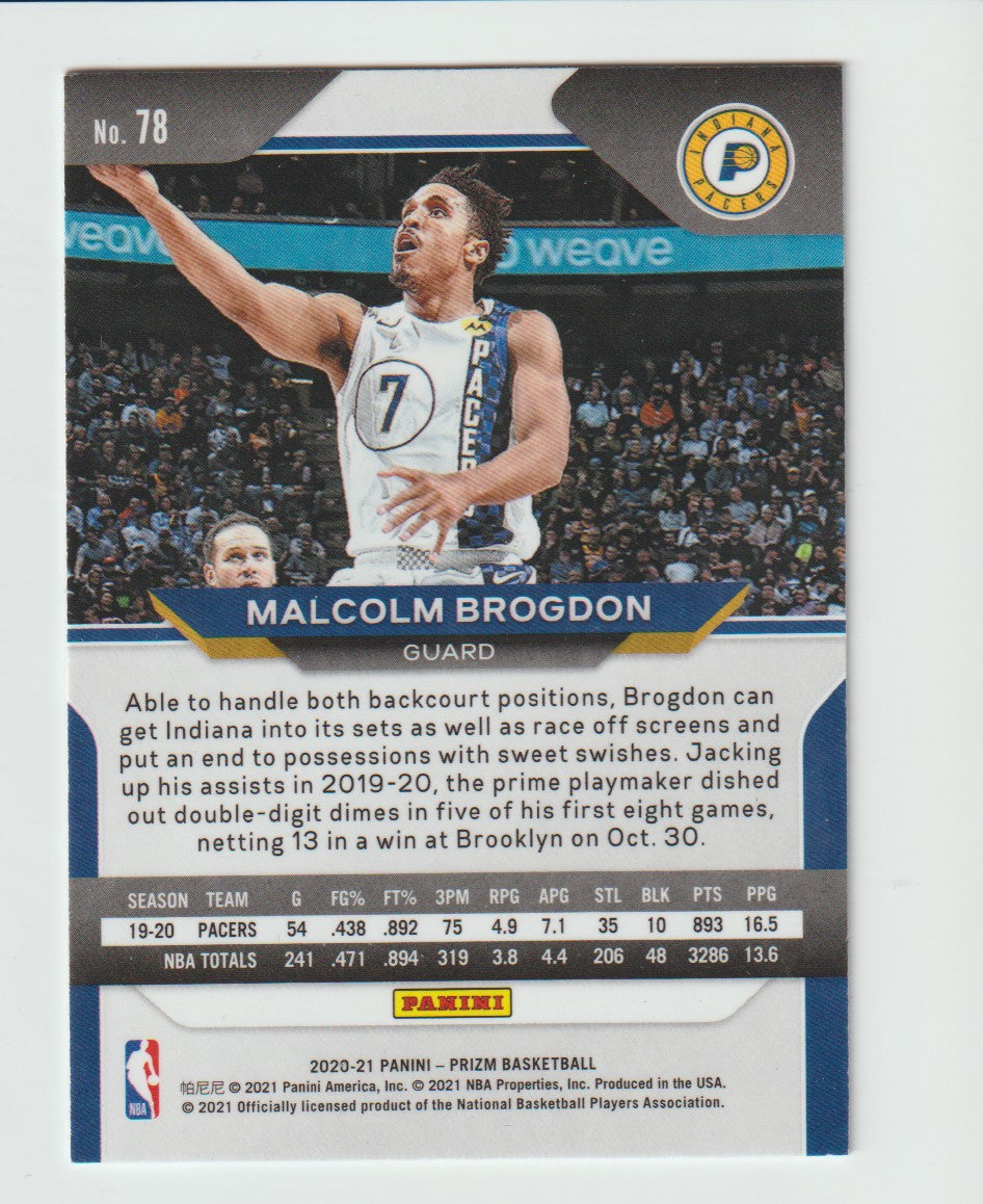 78 Malcolm Brogdon - Indiana Pacers 2020/21 Prizm Basketball